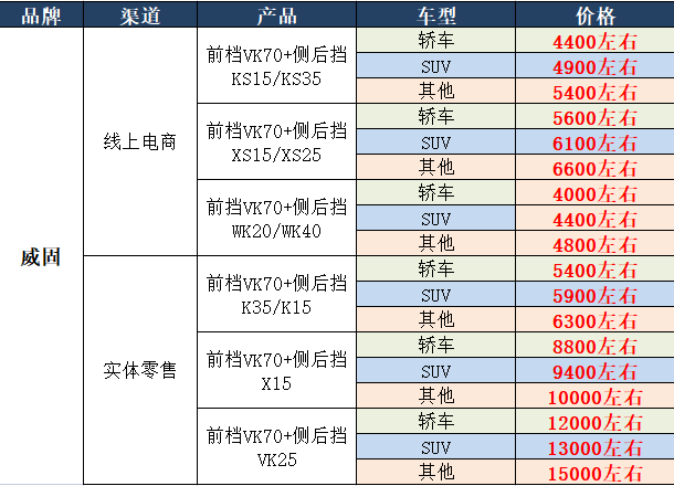 前挡VK70+侧后挡WK20/WK40是电商型号,可以在天猫/淘宝上购买,具体的价格可以在线咨询客服。