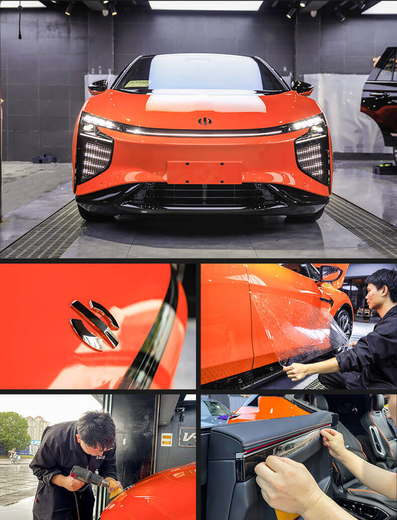 改色膜对施工技术要求更高,车艺尚只安排大师傅贴改色膜,实现整车漆面全面贴覆,一次成型,平均耗时2天精工交付