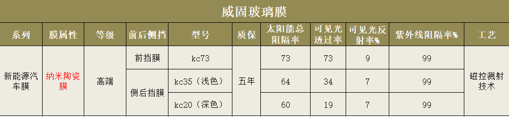 总结:任何一款窗膜看它隔热好不好,就看它的太阳能阻隔率,威固KC73可达64%,威固的畅销款vk70的总太阳能阻隔率才只有55%,KC73要比vk70的总阻隔率多了将近10%,您要知道,即便想增加1%那也是比较困难的;其次便是清晰度(透光率),威固KC73透光率达到73%,vk70才有71%。因此,威固KC73的价格贵就贵在这里,高隔热的同时清晰度有很高,只能是夏季贴膜的最好的选择。