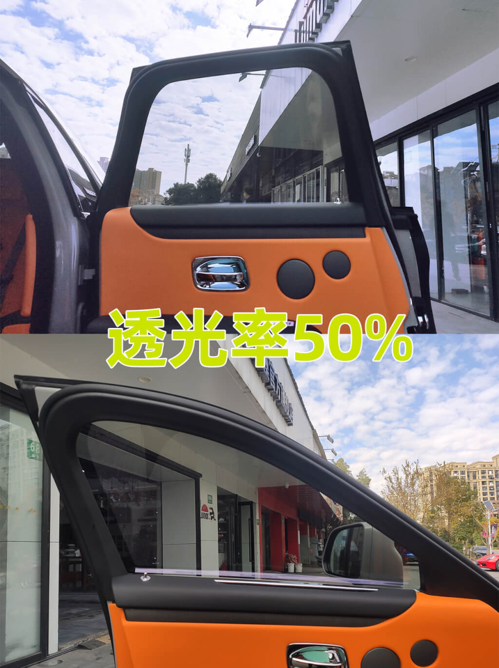 汽车膜透光率是指指光线通过的百分率,透光率越高,即代表驾乘人员的视线越清晰,相反就很暗。通常透光率有80%/70%/50%/35%/30%/25%/15%等。具体我们来看看,他们从外往里看以及从里往外看效果图。
