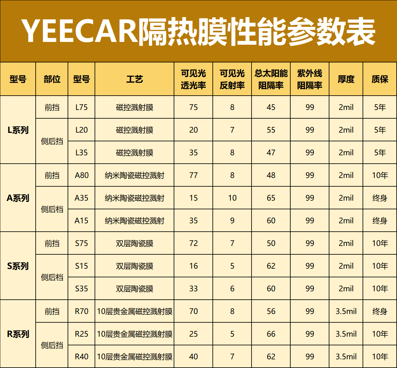 特点:4mil防护,黄金厚度,在金属系列的所有优点上增加无敌防爆功能。同时保证,清晰+隔热+安全+健康。