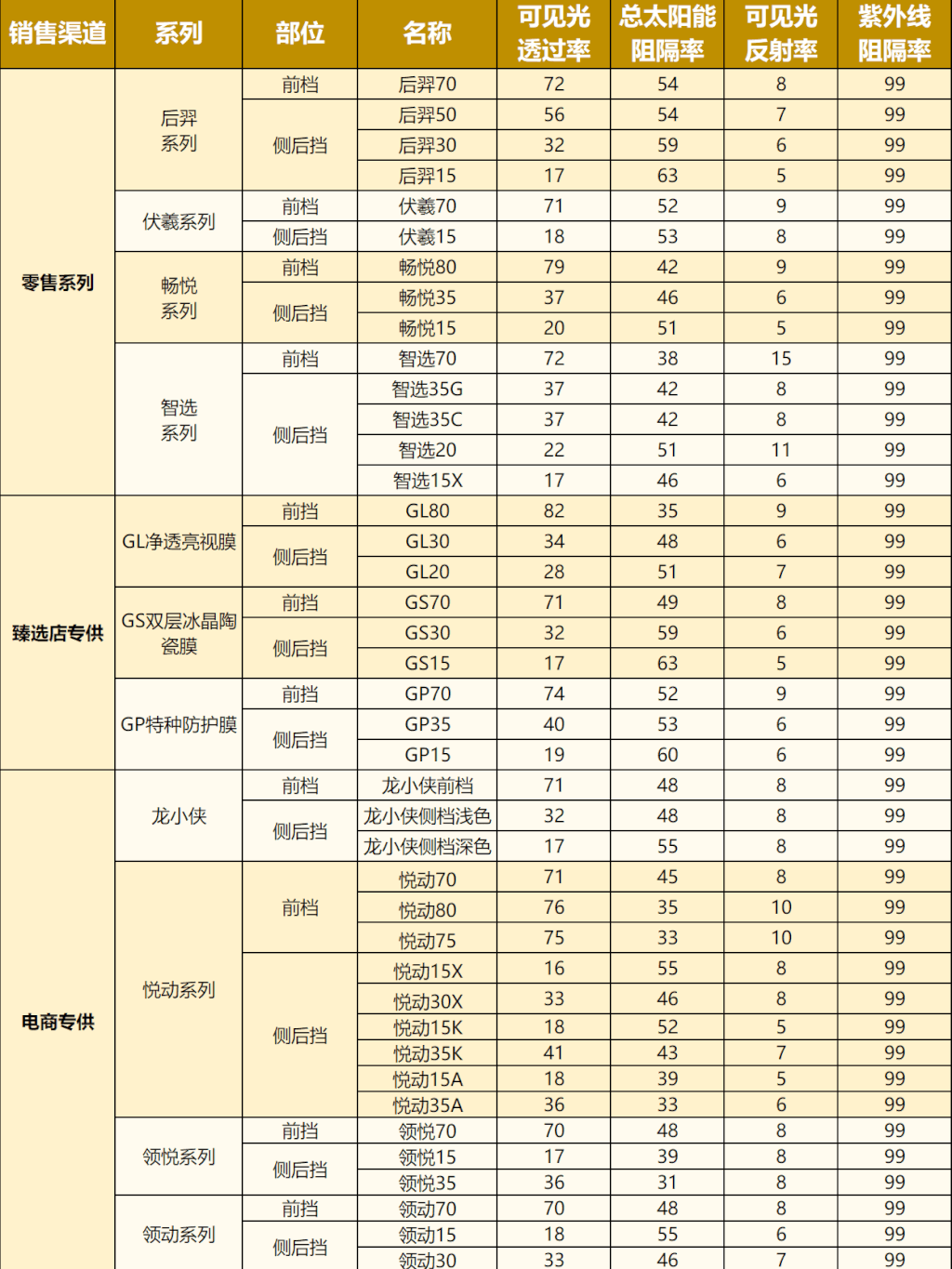 金属系列:前挡智选70、侧后挡智选15/35G、前挡悦动75、侧后挡悦动15/35