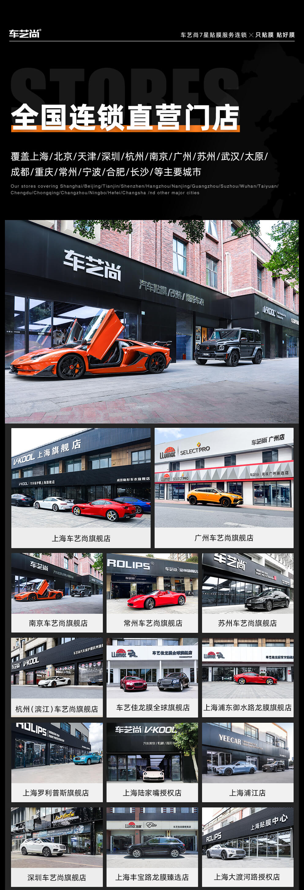 10家汽车贴膜门店通用:成都/东莞/佛山/成都/长沙/武汉/天津/重庆/太原/北京