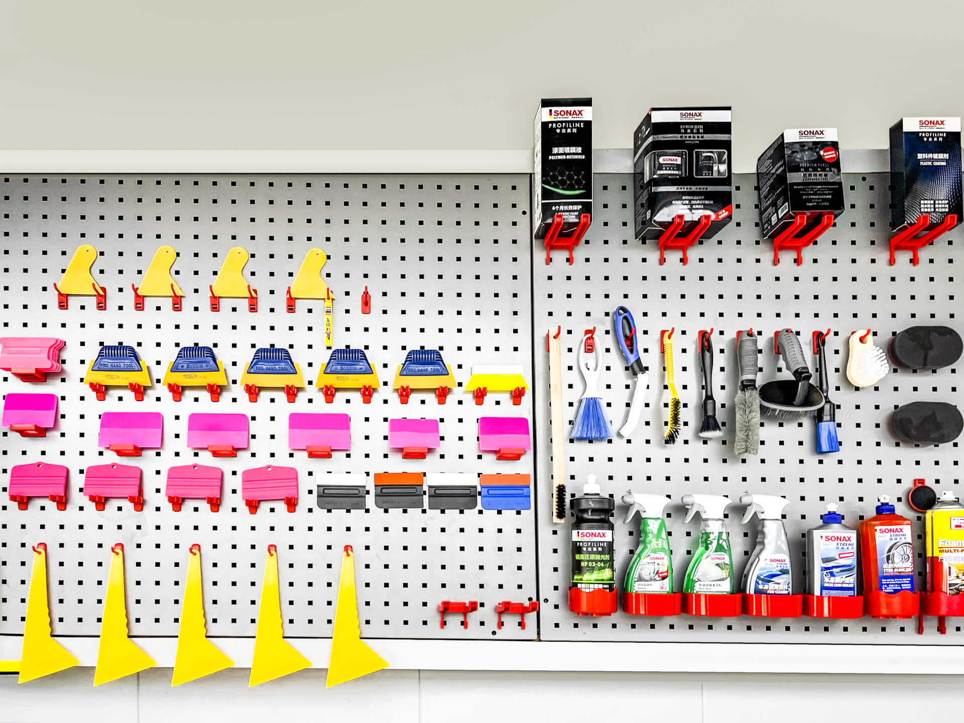专业店面配备专业的贴膜工具,如工具箱、烤枪、裁膜刀、各式刮板、毛巾系列、吸水布、喷壶、净水器等,除此之外还会使用专用保护用品,如纯棉大毛巾、保护坐套、门板保护套、脚踏垫等,为保护您的汽车漆面和内饰品提供全方位的防护。车艺尚重庆门店有车艺尚专业配套的施工工具,各种操作应有尽有,随时为专业施工做好准备。