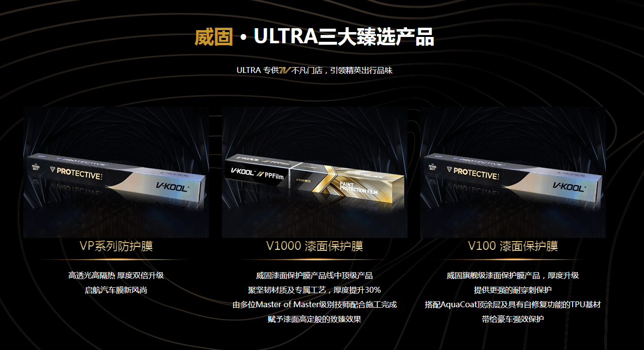 如被威固官方授权的车艺尚重庆贴膜店,门头和车间装饰主要以黑灰色为主色调,不会增加太多其他颜色,顶多就是添加一些金色为点缀,像威固车膜的包装盒一样,都是以黑色和金色为主,甚至威固官网设计的颜色也是如此。