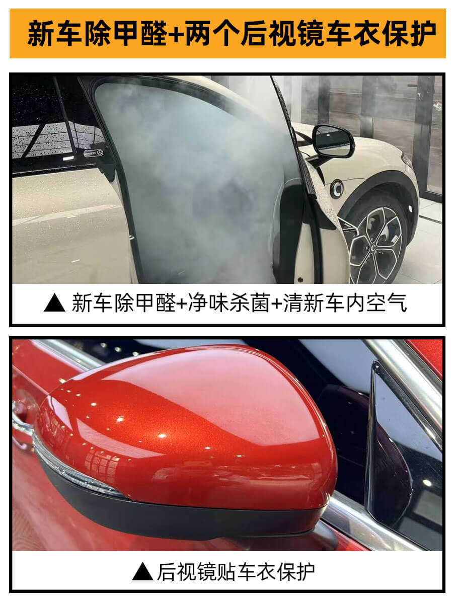 新车除甲醛+两个后视镜车衣保护,日常价398,活动价39.8