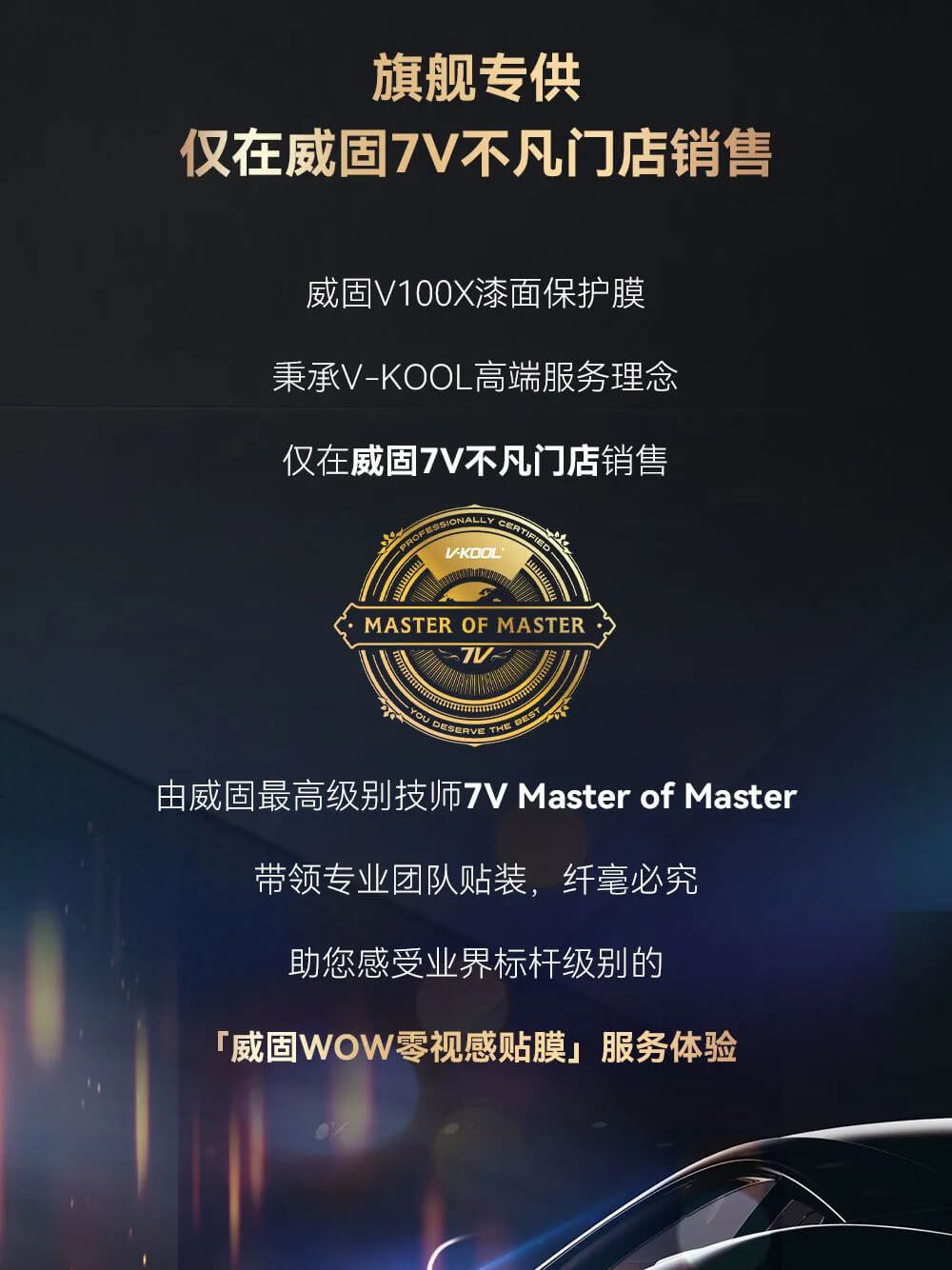 由威固7V Master of Master等级技师,带领专业团队贴装,纤毫必究,助您感受业界标杆级别的服务体验。