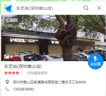 自驾导航:您也可以通过百度地图、高德地图等导航软件输入“深圳车艺尚汽车贴膜店”为目的地,根据提示自驾前往。店铺附近有大型停车场,方便车主停车。