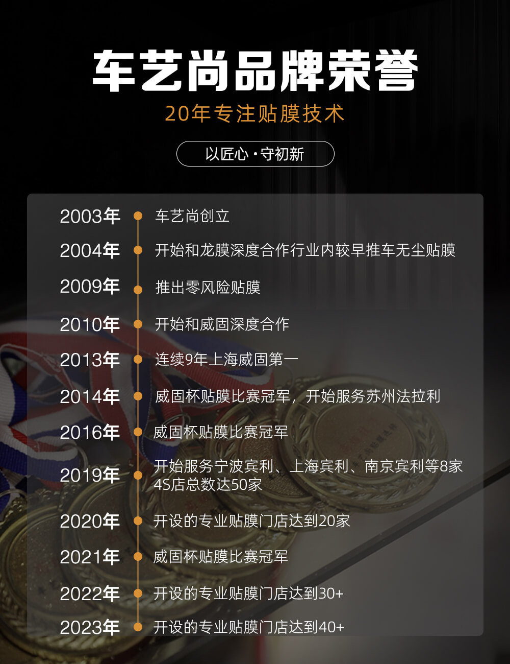 车艺尚20年运营服务,对于选品向来严格把关,所有代理品牌都是经过实测后再售卖,售后率极低,实力缔造品质,为爱车保驾护航,我们更专业。