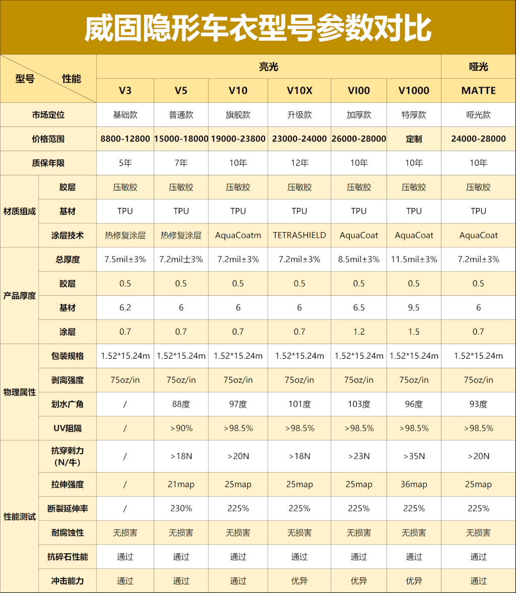 根据市场行情,腾势D9贴威固车衣的价格一般在8800元到30000元不等,俗话说得好,一分钱一分货,价格贵的,它的防护性能会越好,就比如威固的新品v100x,作为第三代隐形车衣,源伊士曼独有TETRASHIELD?顶涂层技术,双X交联分子构建更稳固屏障,整体性能多方面升级,厚度大幅提升16.7%,抵御别蹭更耐穿刺!
