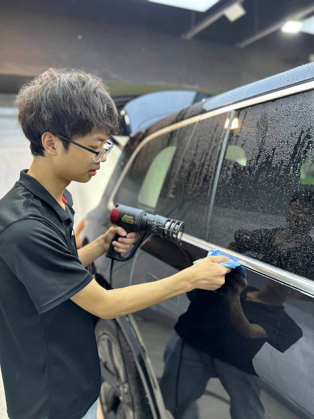 在这里推荐车艺尚汽车贴膜连锁店,全国门店50+,店内配有无尘喷淋施工空间,专业保护/微水施工/垫片裁膜/恒温烘烤/微距施工等,配有至少9年以上的贴膜大师傅,并有特调的电脑裁剪设计,精准车型数据实时更新,针对复杂的车型,也可以实现包边预留,不拆车不扣字,真正隐形的实现细节边角处的贴膜覆。