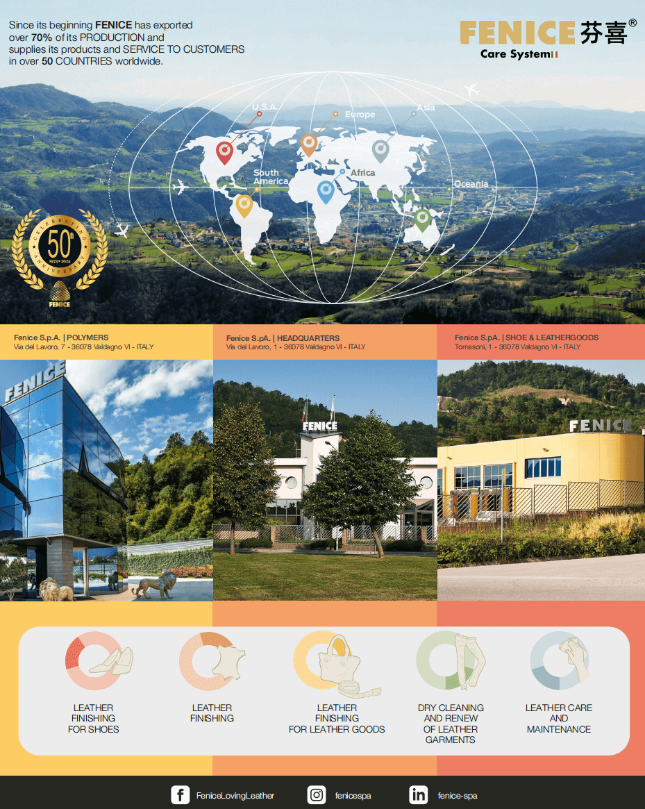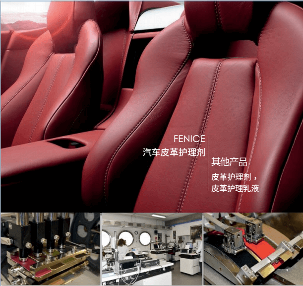 芬喜,成立于1973年,源自意大利的皮革一体化解决方案提供商,公司位于意大利威尼托地区,也是意大利制革中心所在地Arzignano附近。早期,芬喜为全球奢侈品提供皮革涂饰,2000年应奢品品牌需求,开始研发皮革护理和修复产品,并建立实验室专门从事汽车和飞机内饰翻新。