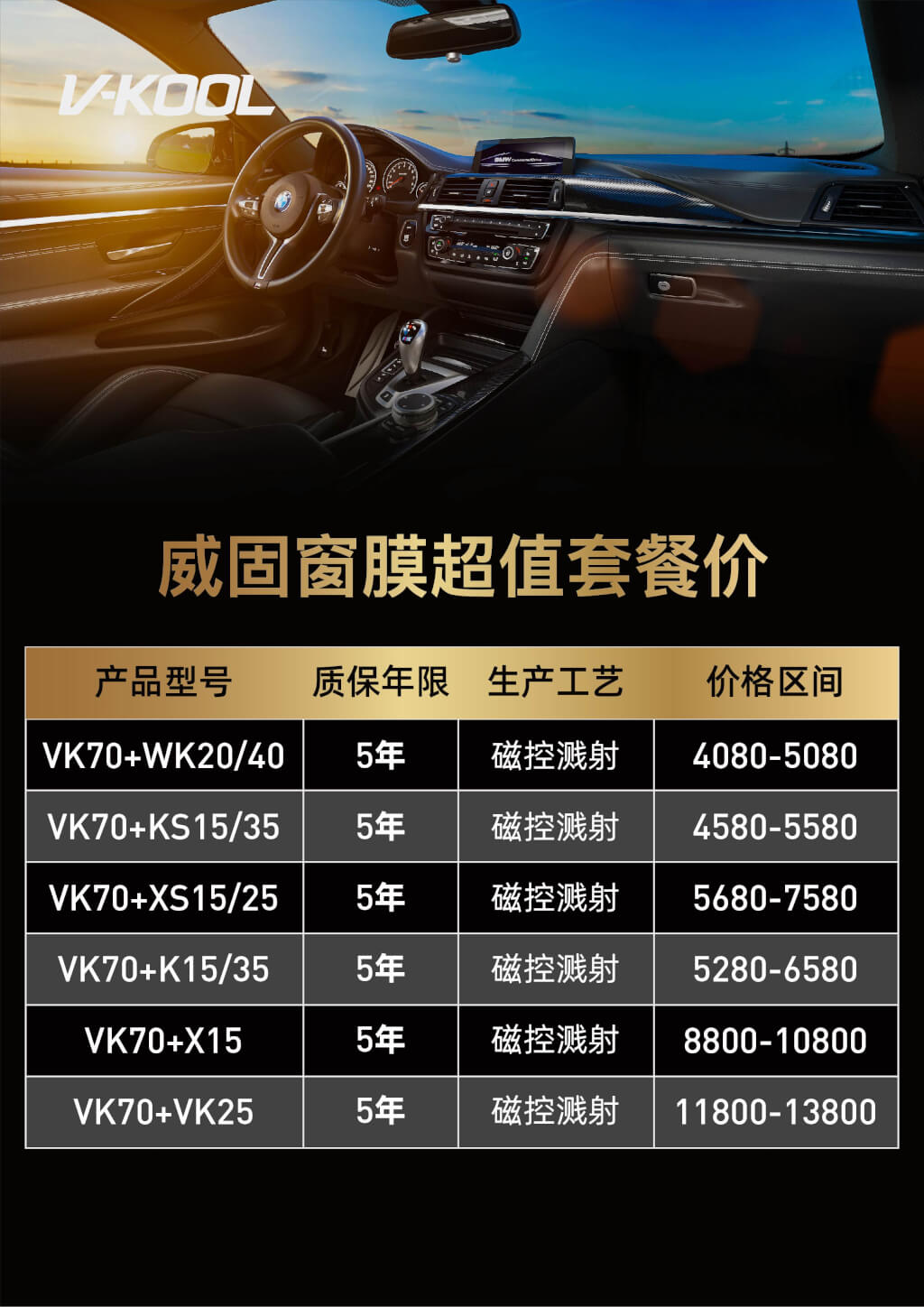威固汽车隔热膜价格表: