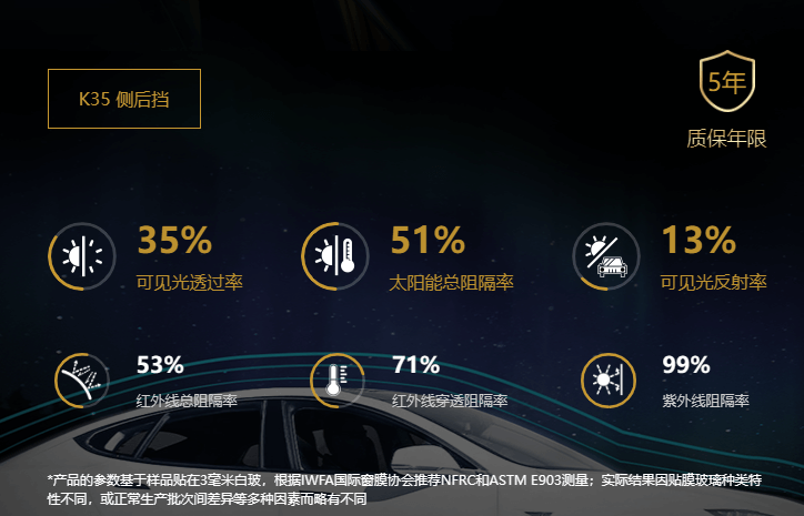 KC35为浅色膜,透明度偏高,如果喜欢后排光线偏亮的,可以选择贴KC35