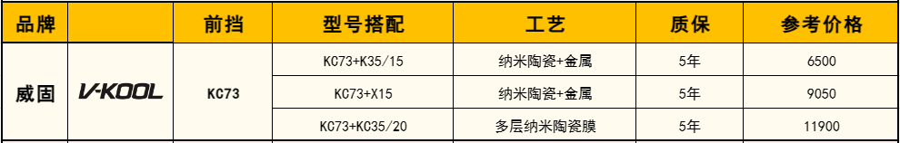 二、威固KC系列全车贴膜常用搭配及价格