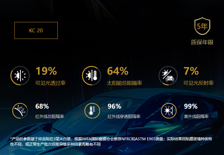 KC20为深色膜,高隐私,如果对个人隐私要求比较高,可以选择贴KC20。