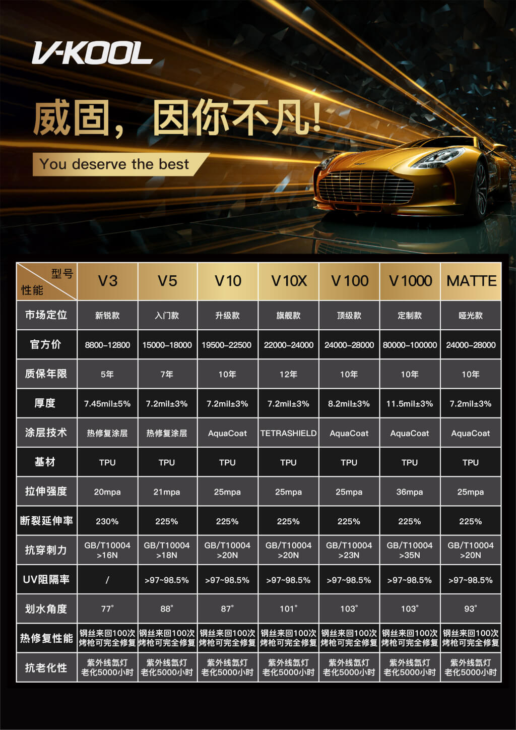 威固隐形车衣的品质相比不必多说,车膜市场上的龙头品牌,一直站在车膜的至高点,伊士曼生产车衣产品,质量自然是不会差的。威固车衣型号参数如下: