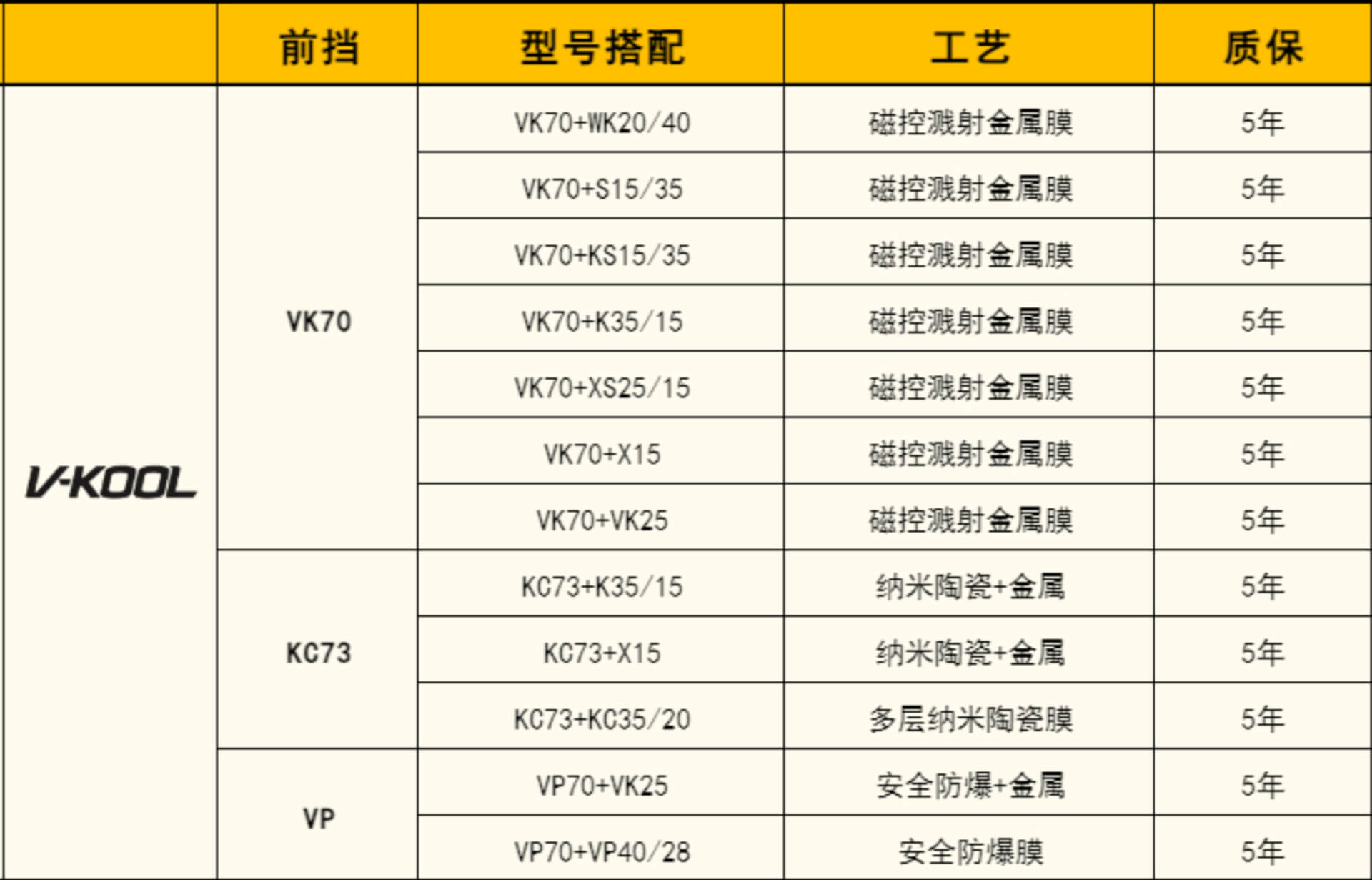 对侧后挡的隔热性能没有特殊要求的,想买价格实惠的,推荐选择前挡vk70+侧后挡k系列;