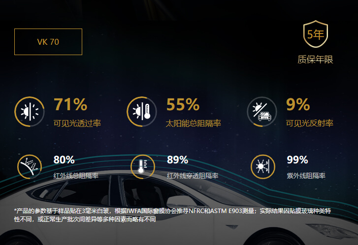 虽然威固VK70和龙膜畅悦80都分别是威固和龙膜的主打产品,但是它们的定位是不同的。VK70是威固的顶尖玻璃膜产品,是威固最具代表性的高端玻璃膜之一,可谓是高端品质的代表;而龙膜畅悦80是中端产品,走的是亲民路线,是龙膜性价比最高的一款车膜。