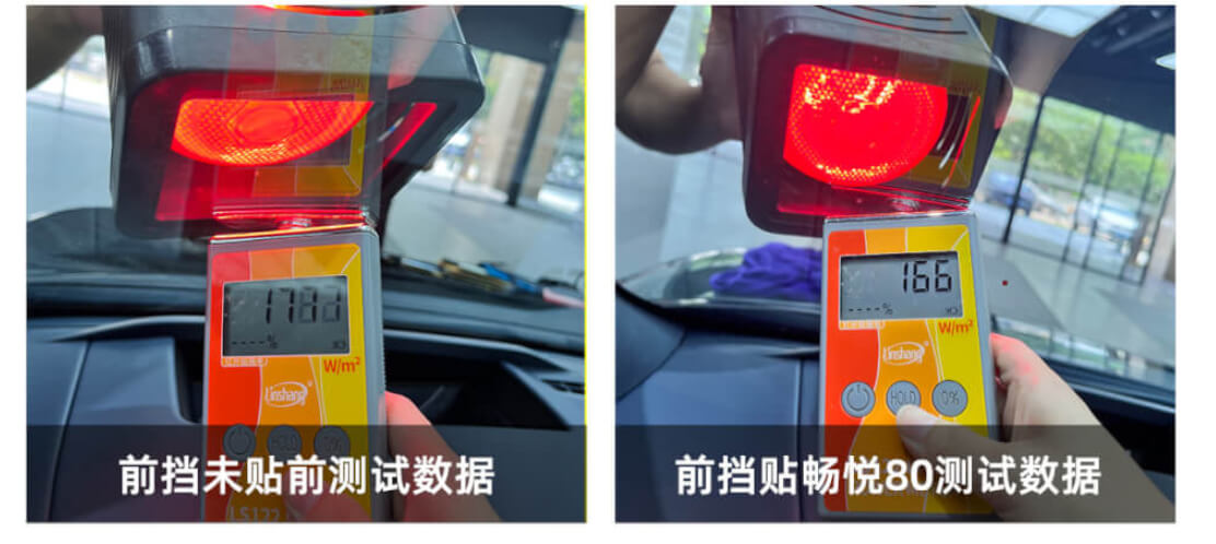 VK70透光率为71%,畅悦80的透光率高达79%,相比之下畅悦80的透光率更高,所以会更亮、更清晰,喜欢前挡高亮、高清晰的车主可选畅悦80。VK70和畅悦80的可见光反射率均为9%,都能强效防眩光,提供高清驾驶视野,均可保障外出驾驶安全。