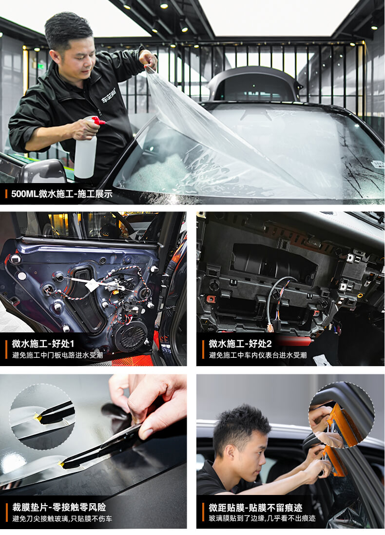 微水施工 :使用少量水份进行施工,减少因大量用水可能对车辆内饰、电路系统等造成的受潮、短路风险。