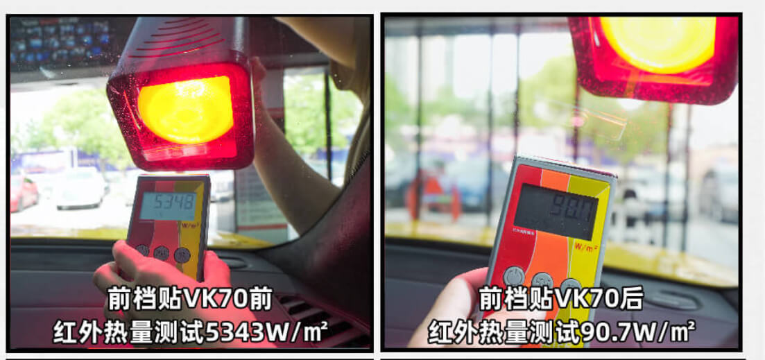 侧后挡不是前挡玻璃,不需要提供高清驾驶视野,所以清晰度不需要很高,相比之下更需要隐私性,而vk70的透光率高达71%,贴在侧后挡会非常清晰透明,容易被人窥视。