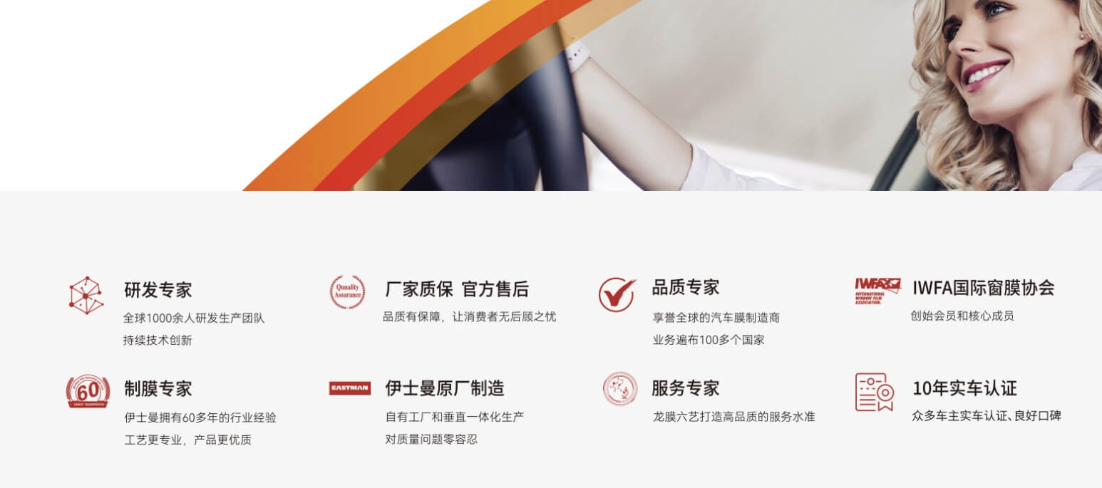 威固品牌定位高.端,隶属于美国伊士曼化工,以超卓的隔热能力著称,产品质量与性能均属业内天花板。龙膜也隶属于美国伊士曼化工,以清晰与隔热见长,拥有悠久历史,特别是在美国市场广受好评,致力于提供安全舒适的驾驶体验。