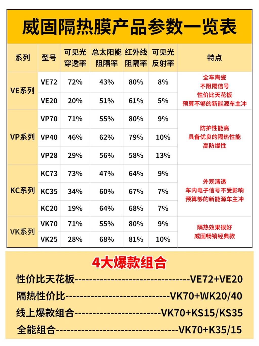 威固隔热膜爆款组合及型号一览表!