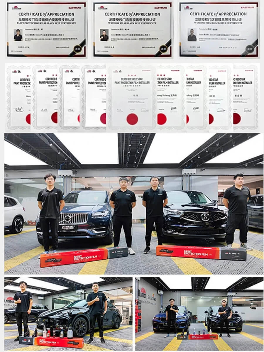 车艺尚佛山店是龙膜品牌的官方授权门店,隔热膜、隐形车衣等店内所有产品,每一张车膜都可在龙膜官网上查询到电子质保,三码合一,只贴正品膜