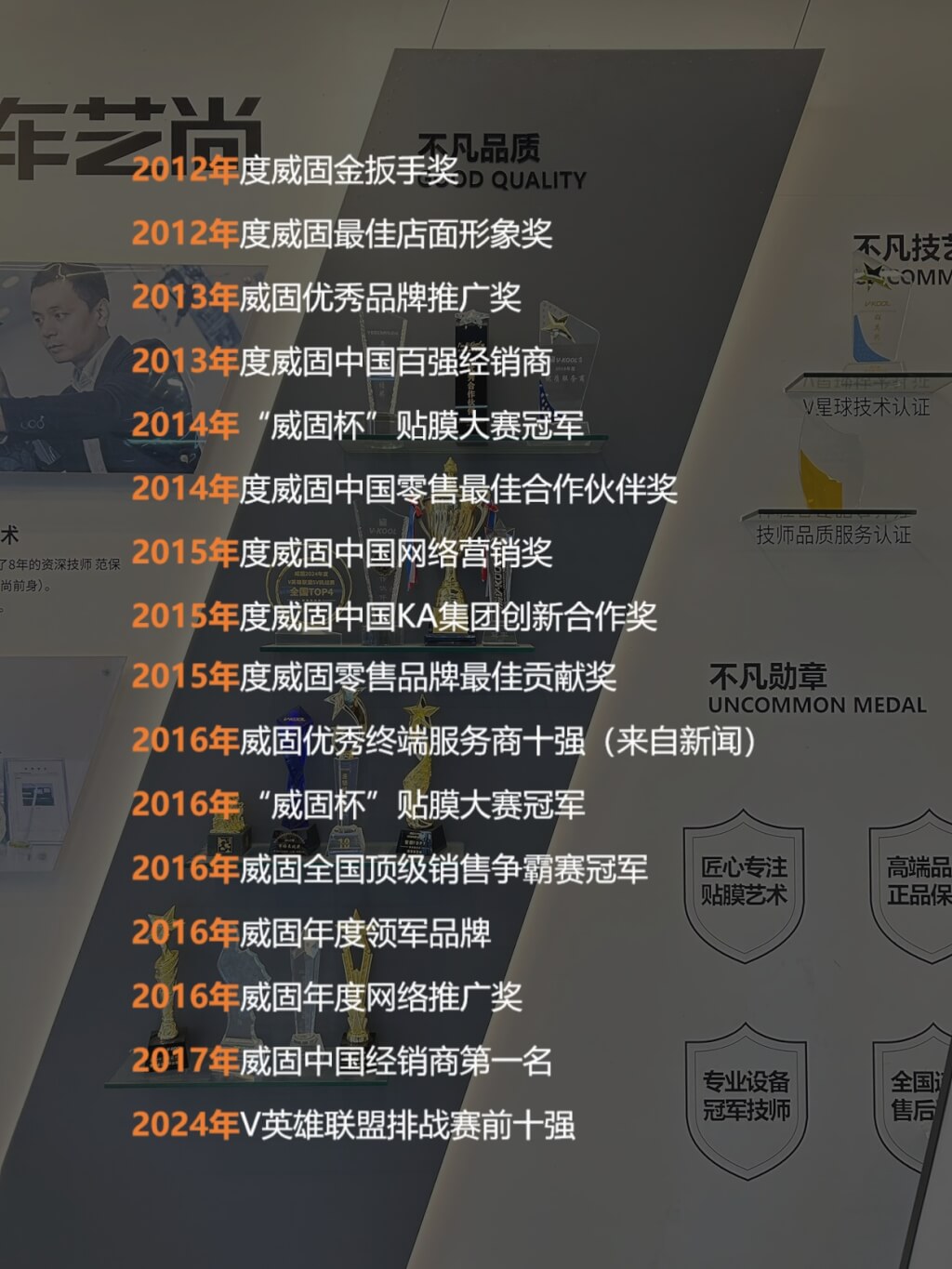 公司拥有领先的无尘施工车间、行业冠军贴膜技师团队和业内标杆级的施工标准,为顾客提供“正品选货+施工+质保”的管家式服务。