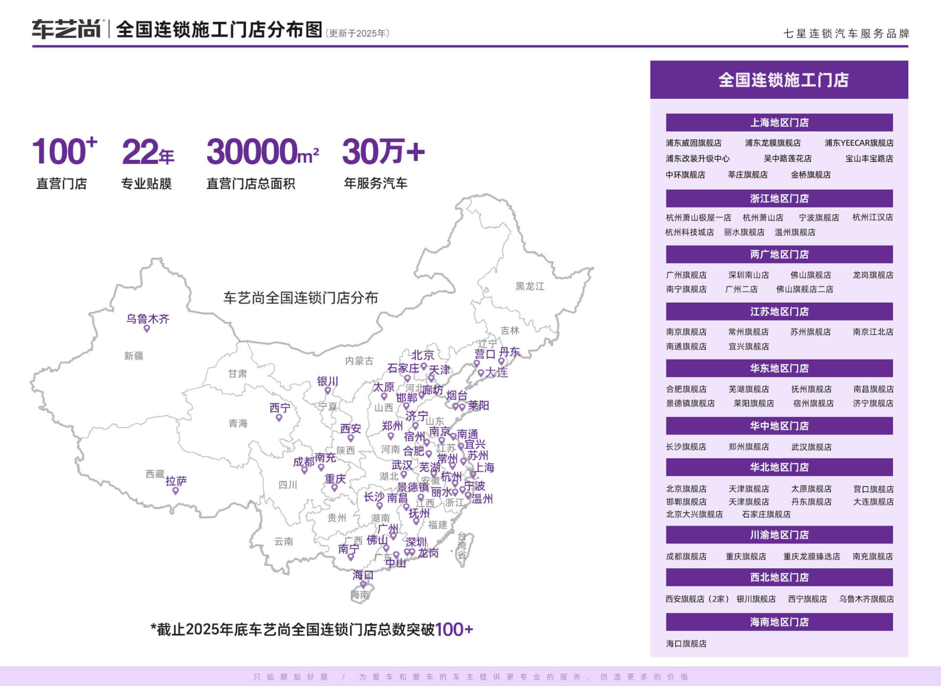 车艺尚自2003年成立以来,始终专注于汽车贴膜、德系养护、与原厂性能升级等服务,秉承“为车主提供高品质的汽车服务”的宗旨,在汽车后市场领域精耕细作二十余载。