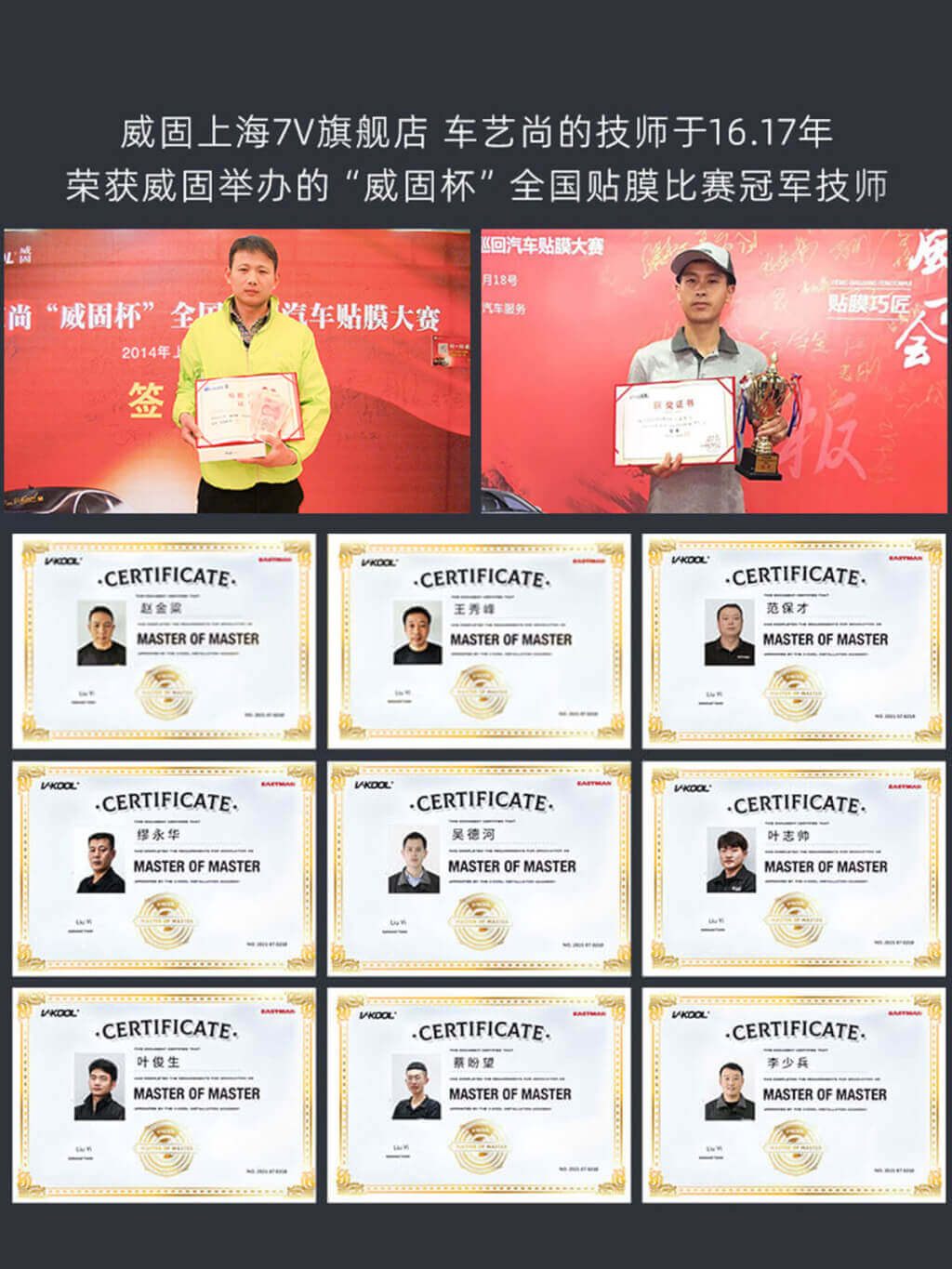 2016年车艺尚赵师傅获得15年“威固杯”贴膜大赛冠军