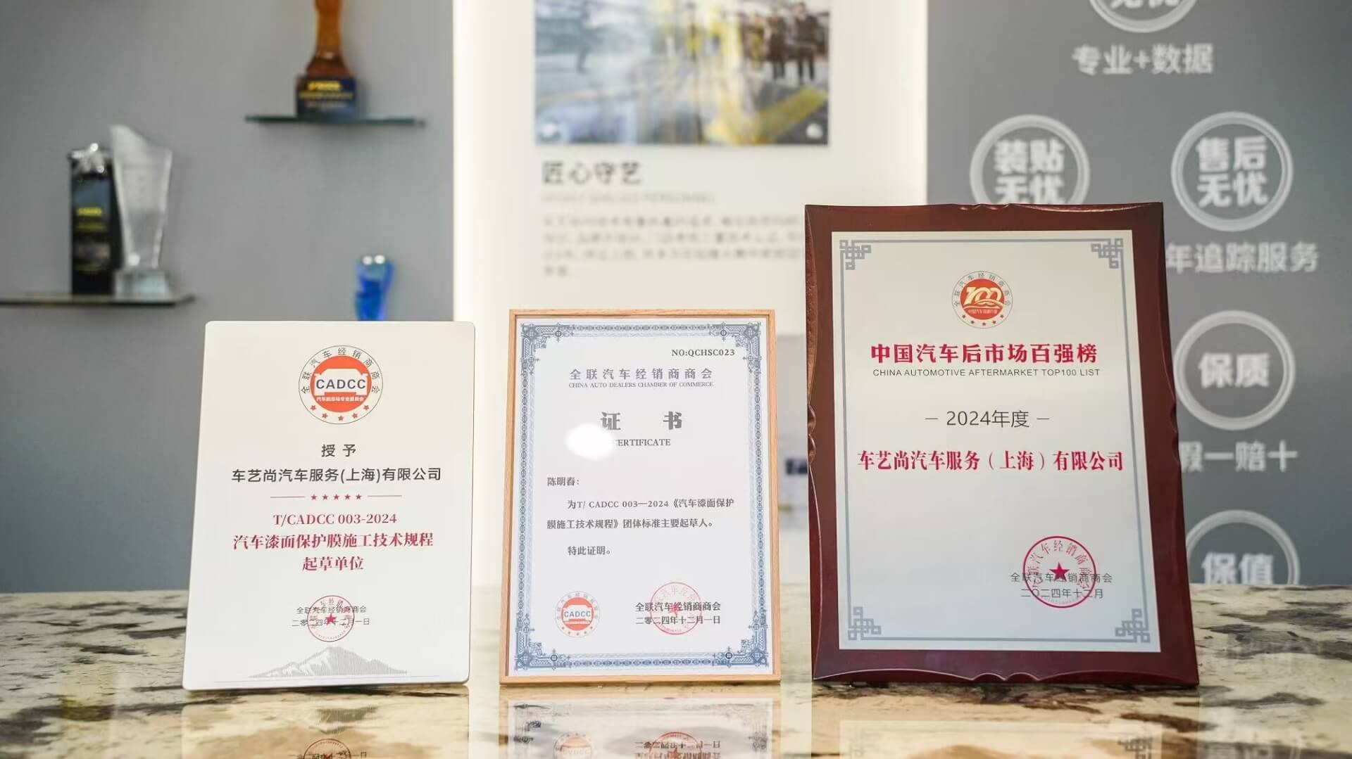 2024年车艺尚荣获《漆面保护膜施工技术规程》重要起草单位,并荣登“中国汽车后市场百强榜单”