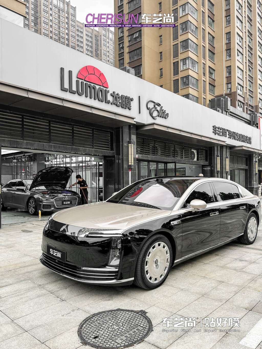 全国仅 28 家龙膜全球臻选店,车艺尚独占上海、广州核心商圈门店,且是华南地区首家获此认证的连锁品牌,并非依赖龙膜扶持,而是凭借自身规模与技术实力脱颖而出;