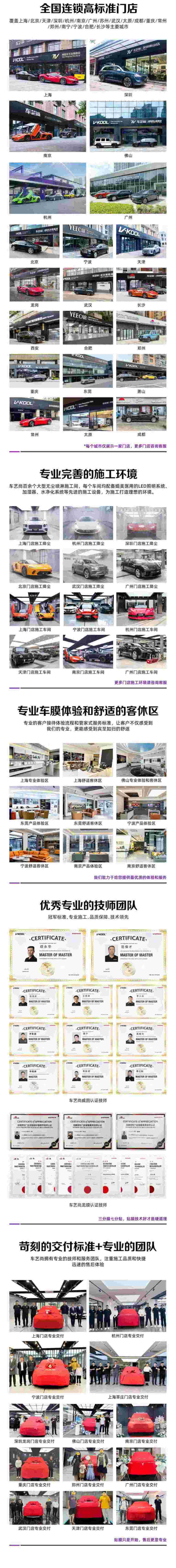 车艺尚宁波店的技师团队均经过行业培训、品牌方培训、内部考核等多重标准选拔,拥有超十万辆车型贴膜经验,最高工龄14年,平均工龄超10年,并多次在全国贴膜大赛中获得各项大奖。每位技师都必须经过行业、品牌方、门店三重技术培训与考核认证方可正式上岗,门店甚至设置了“气球裁膜”的考核项目——将膜贴在吹满气的气球表面,用美工刀裁膜而气球无破损,才算通过考核第一关。