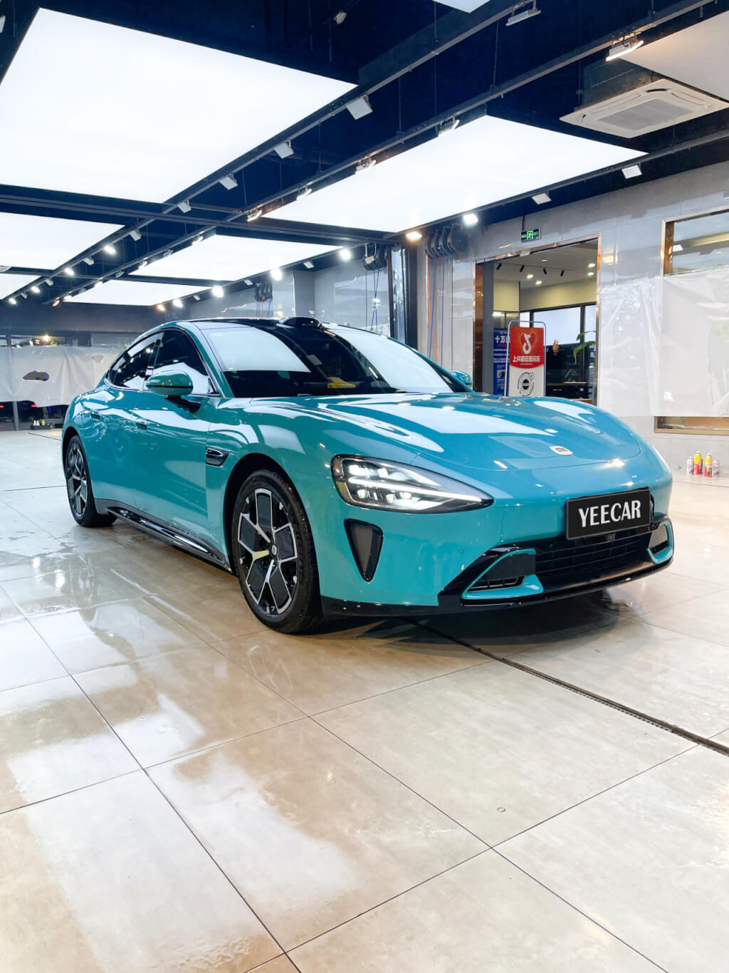 车艺尚宁波店配备专业照明系统、大型喷淋降尘设备和标准的车间疏水系统,能够最大限度降低空气中的悬浮颗粒,减少尘点附着,施工环境干净、明亮、整洁。专业连锁门店还配备恒温恒湿系统、德国进口无影灯系统,确保施工全程无尘、无静电干扰,专业环境可使贴合精度提升40%。