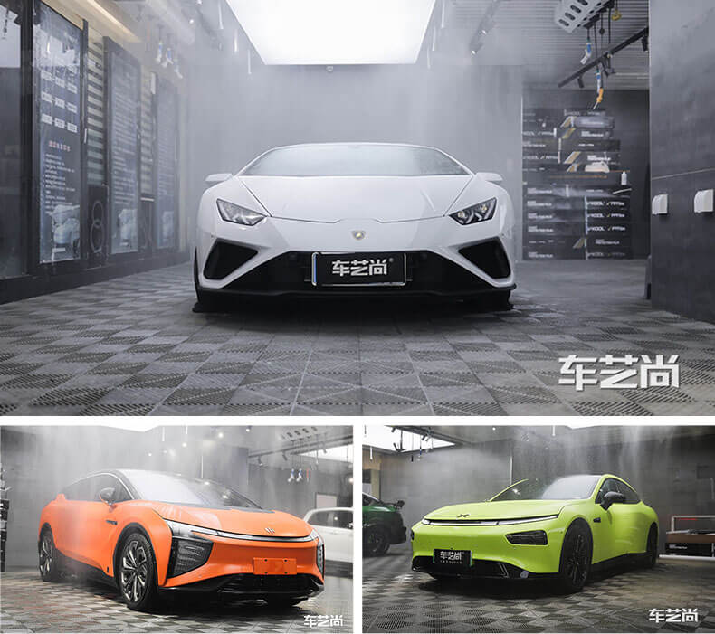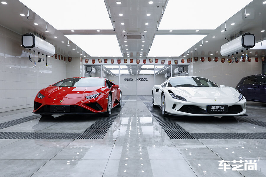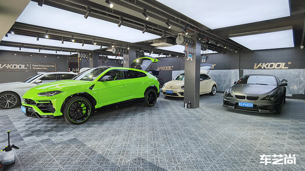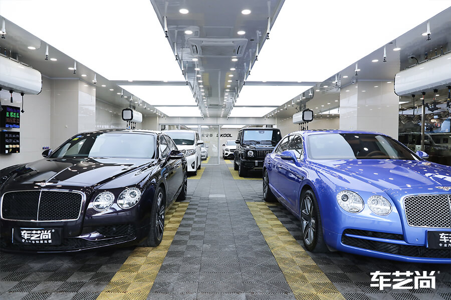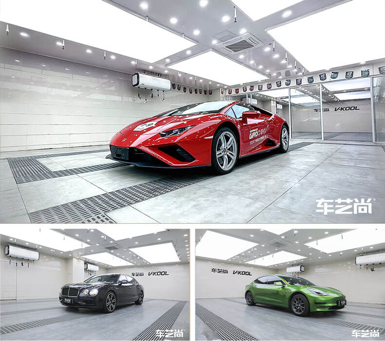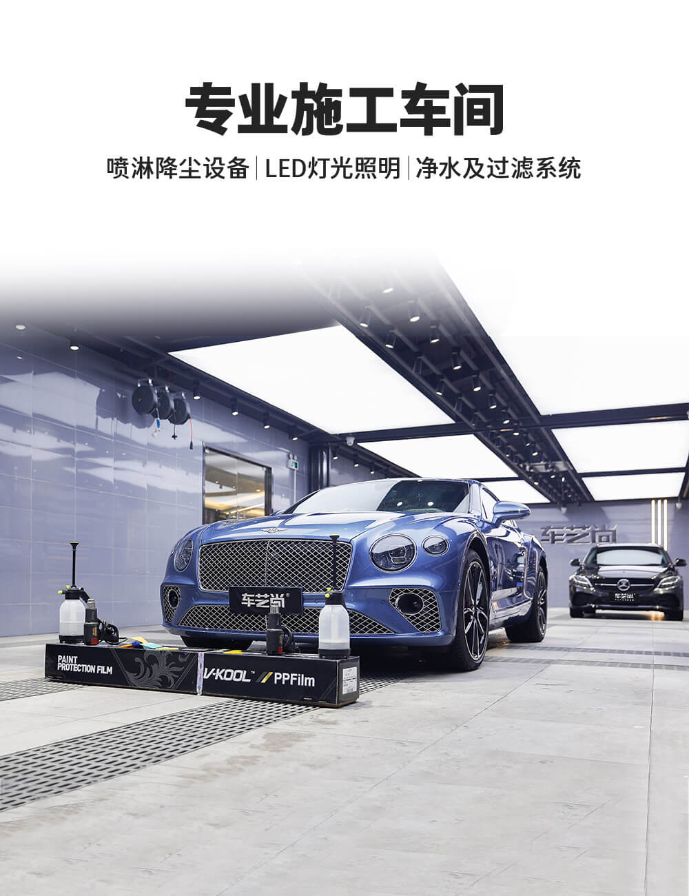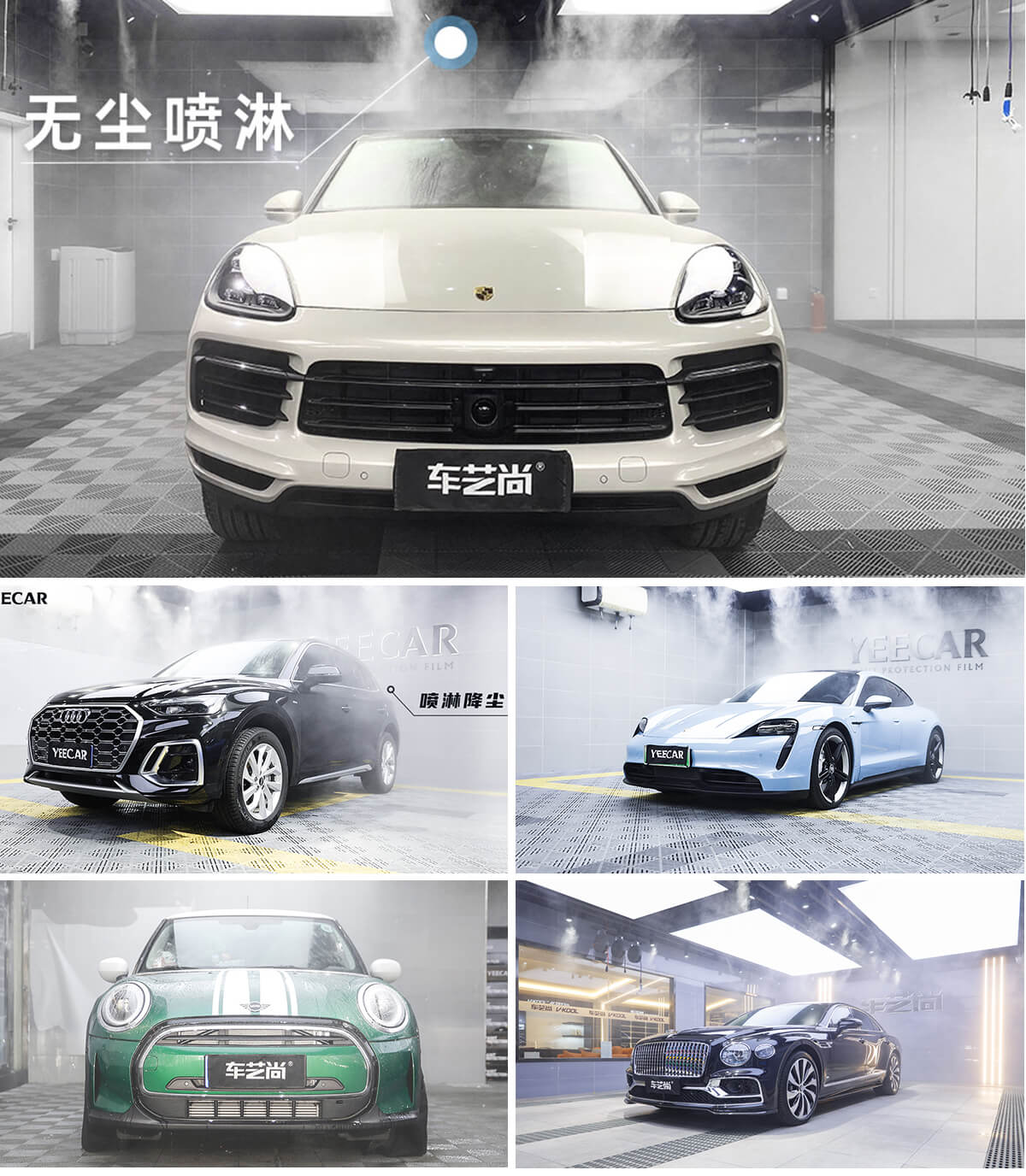 三分膜,七分贴,膜好不好用取决于施工,而一个好的施工间则是保证能把膜贴好的第一步,简单干净的环境、雾化喷淋降尘设备、全方位LED灯光……车艺尚每一个细节都追求最高标准,所以众多豪车都选择在这里贴膜。