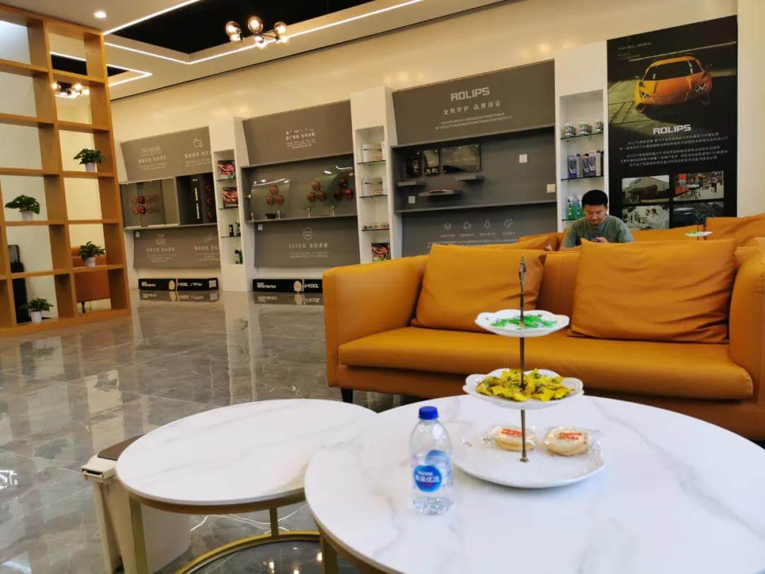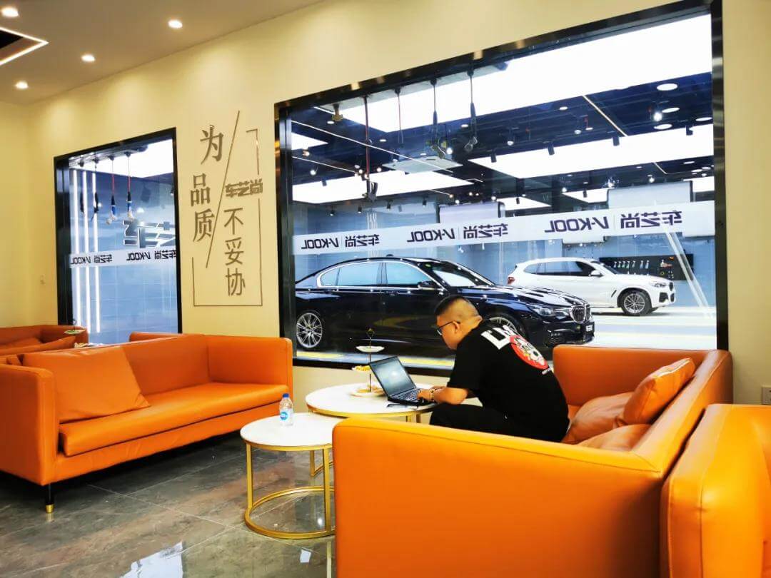 对了,顺便给你们看一下我们部分门店的施工车间还有为车主们免费提供的休息区吧!