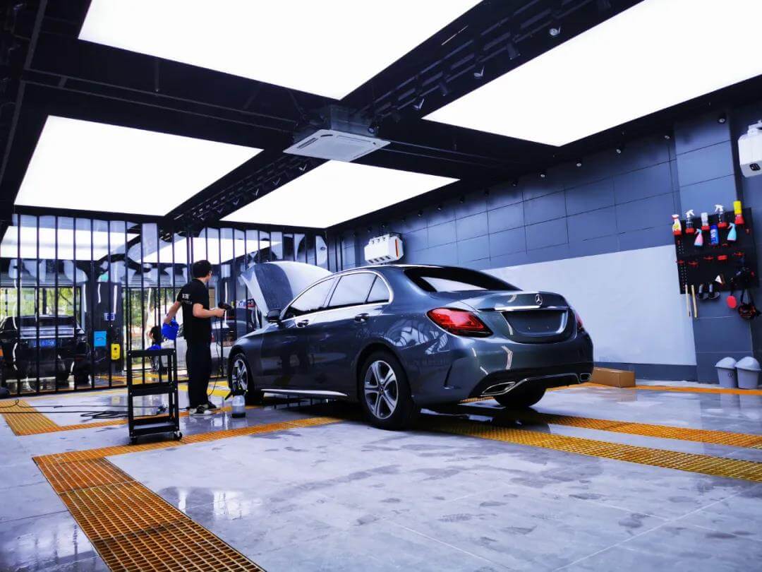 (1)配备无尘喷淋设备,对车身的每个部位都进行精细的擦拭